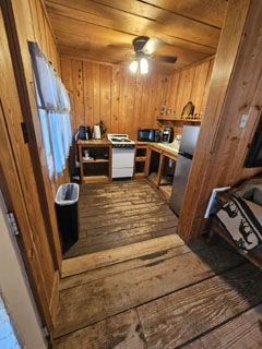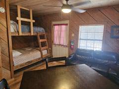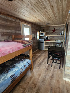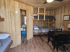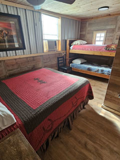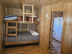 Frontier Cabin has a queen bed, 1 set of bunks, (sleeps