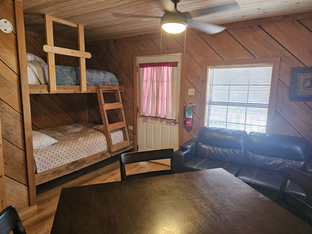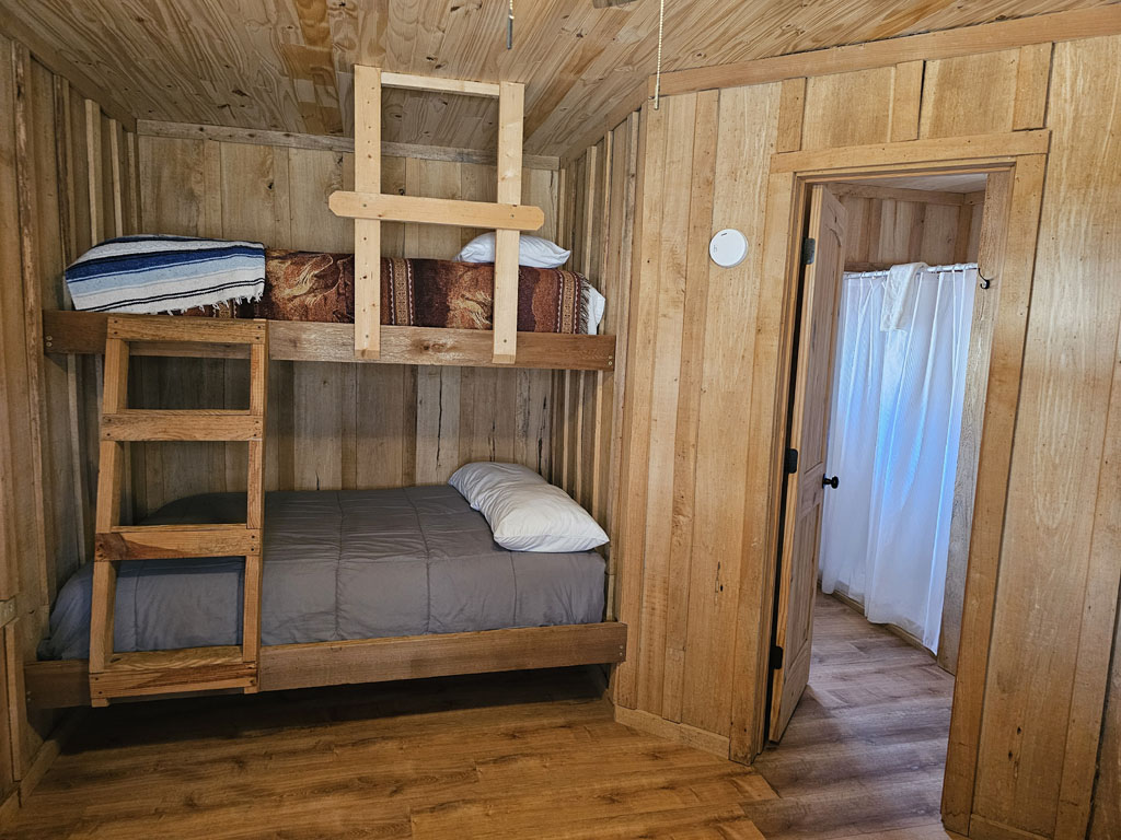 Cabin 1 has a full bed on the bottom and a twin overhead,