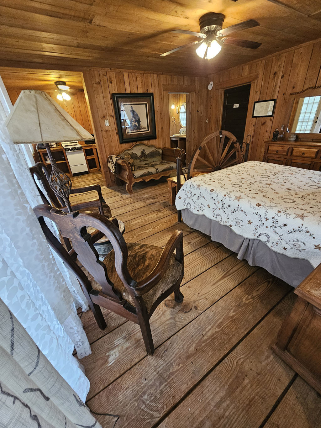 w/ wand, kitchenette, balcony over Saloon, ceiling fan